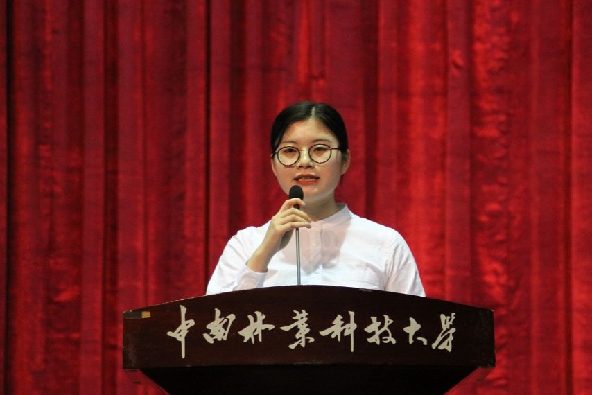 湖南省百佳大学生党员候选人班戈学院2014级学生胡盛和、学员代表商学院2017级学生吴寒秋分别作了代表发言。