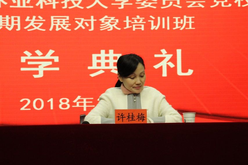 党委组织部部长兼党校常务副校长许桂梅在开班动员讲话中寄语和共勉全体参训学员,要树理想,善学习,勇担当。在党校的学习期间,要脚踏实地,咬定青山不放松,努力汲取党的理论知识。要端正入党动机,增强党性锻炼,用党员的标准时刻对照自己。要把好信念的“方向盘”,造好前进的“发动机”,勇做时代的“弄潮儿”。她希望全体参训学员要牢记青春使命,以优异的表现向学校六十华诞献礼,以奋斗的姿态迈向新时代,在实现中国梦的生动实践中书写人生华章,助力伟大梦想。