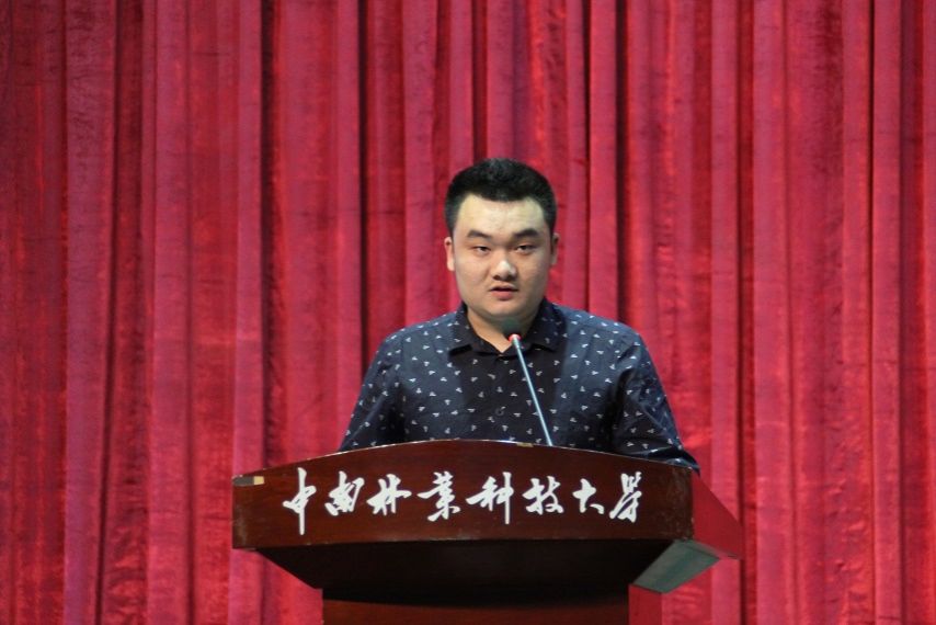 湖南省百佳大学生党员候选人班戈学院2014级学生胡盛和、学员代表商学院2017级学生吴寒秋分别作了代表发言。
